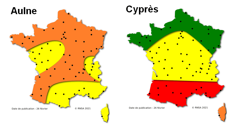 Risques allergiques liés aux pollens de cyprès et d’aulne - RNSA / pollens.fr