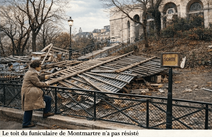 À Montmartre, le toit du funiculaire est balayé par des rafales qui frôlent les 150 km/h... - photo archives meteo-paris.com