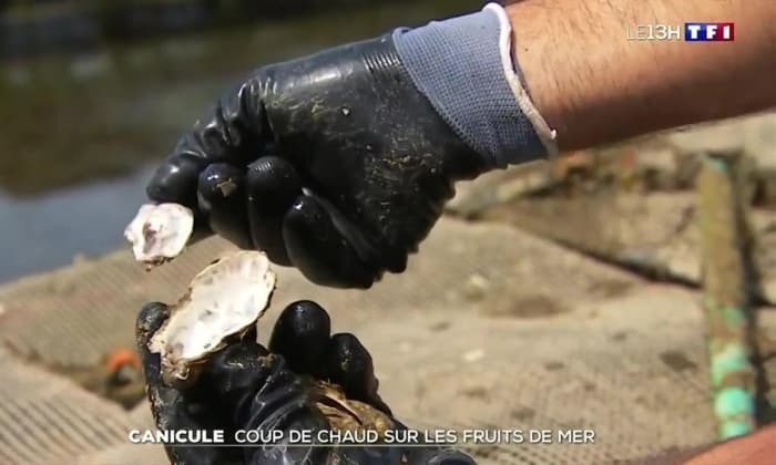 Huître morte en Bretagne du fait de l'eau de mer trop chaude en juillet 2022 - via JT TF1