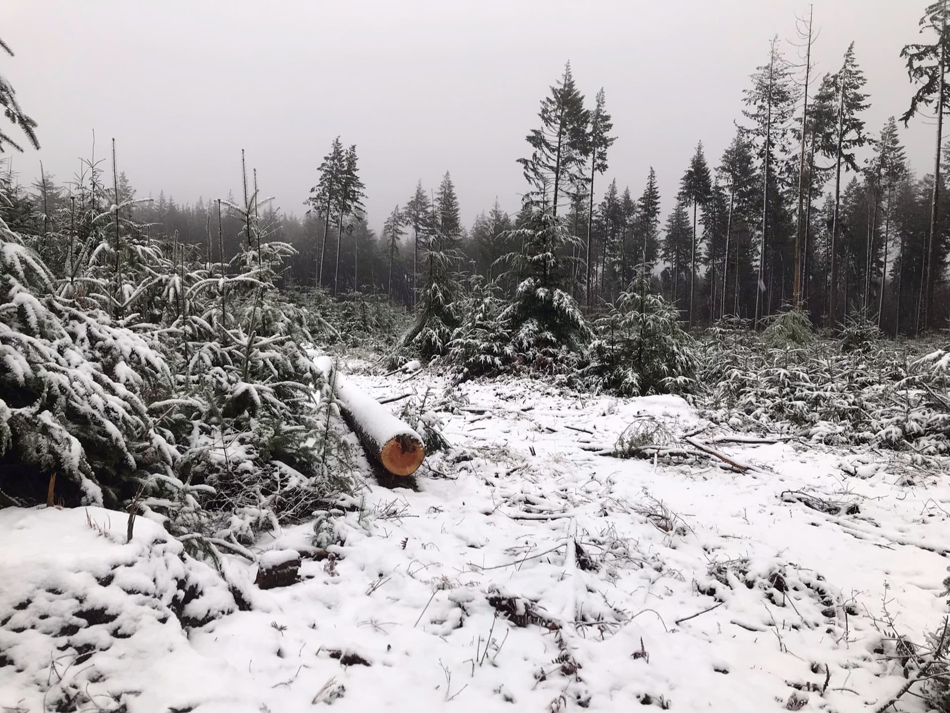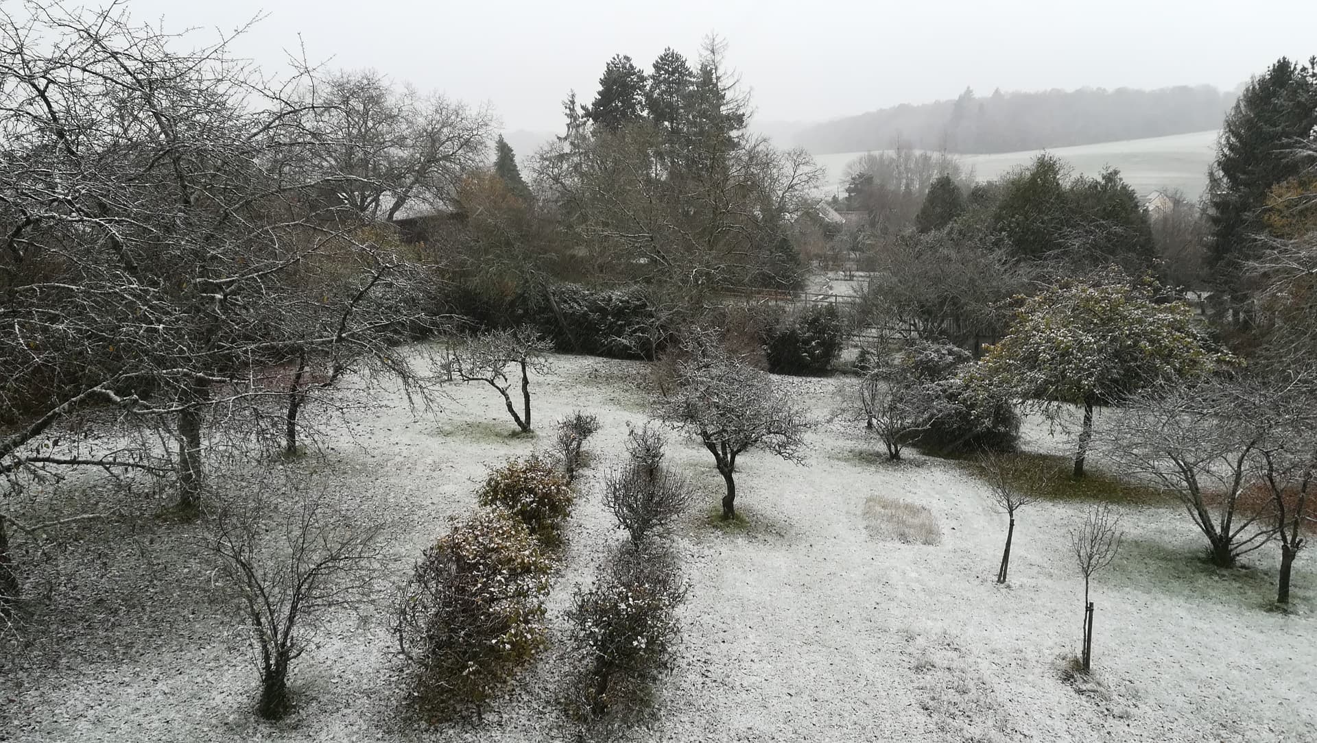 Légère couche de neige à Ecouves (Orne - 410m d'altitude) - 27 novembre 2021 - Twitter Prévi Neige