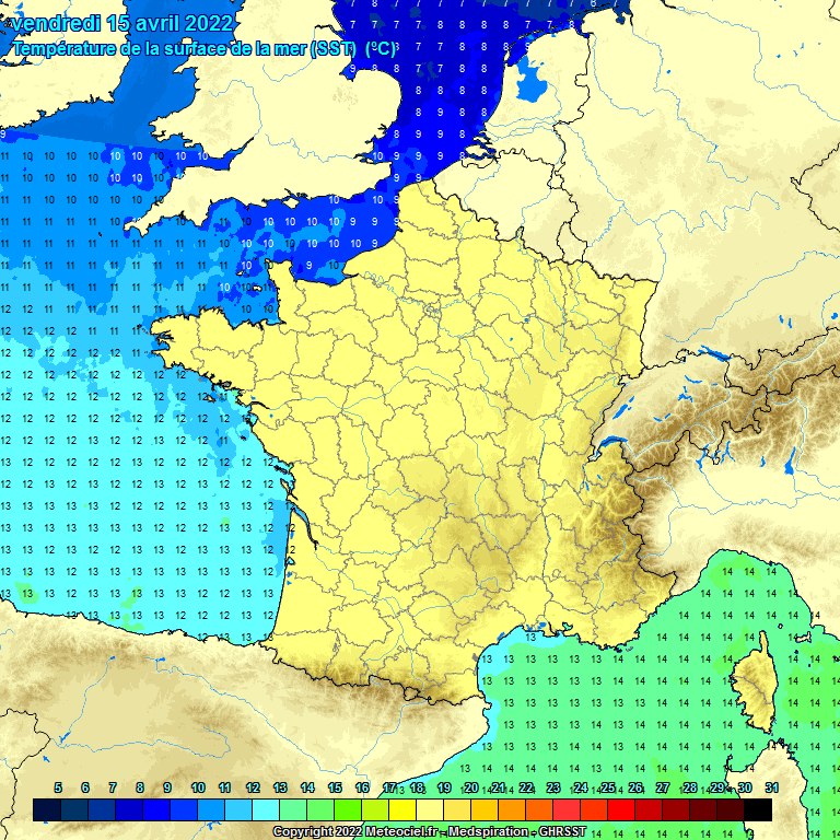 Température de l'eau observée - vendredi 15 avril 2022 - Météociel