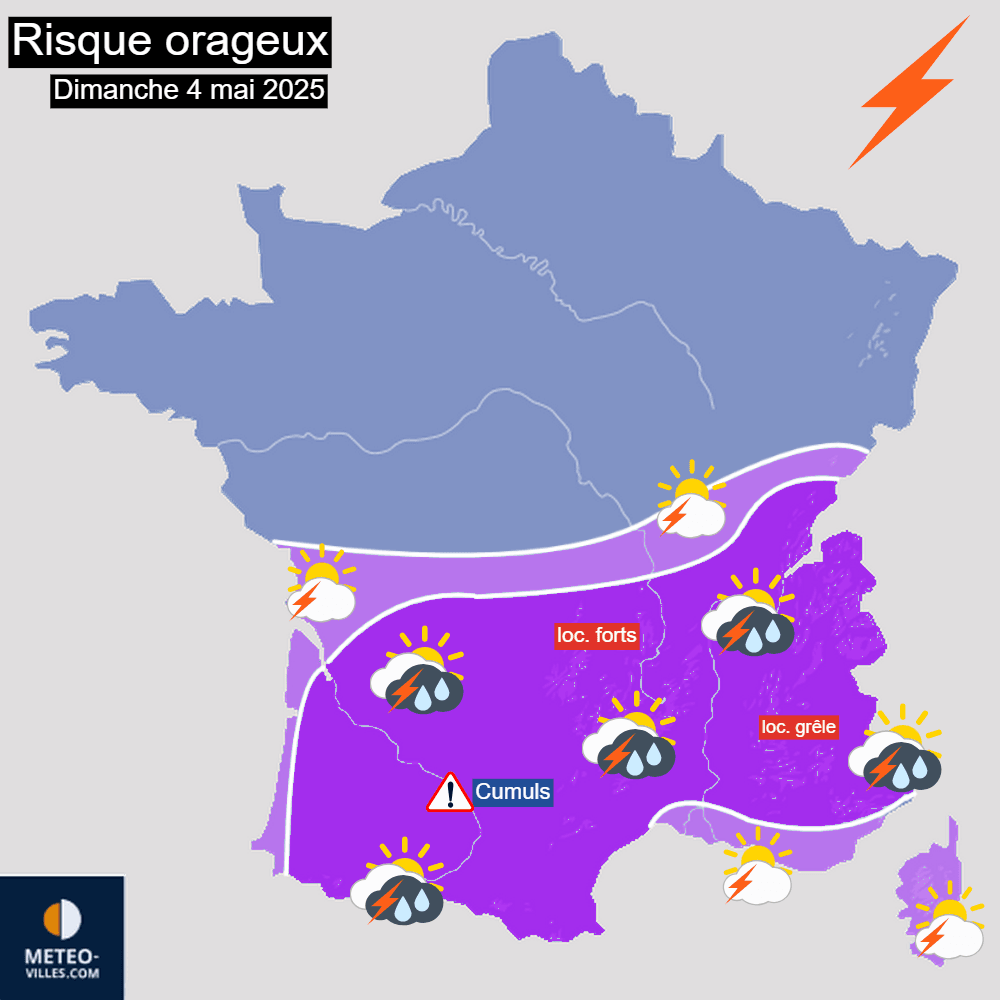 Carte du risque orageux pour le dimanche 4 mai 2025 – Météo-Villes