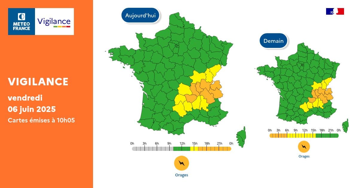 Carte de vigilance du 6 juin 2025 à 10h – Météo-France