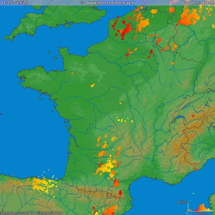 Impacts de foudre le jeudi 9 septembre 2021 entre midi et minuit - via meteofontenay.fr