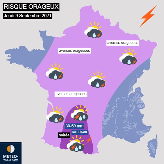Prévision du risque orageux pour le jeudi 9 septembre 2021 - Météo Villes