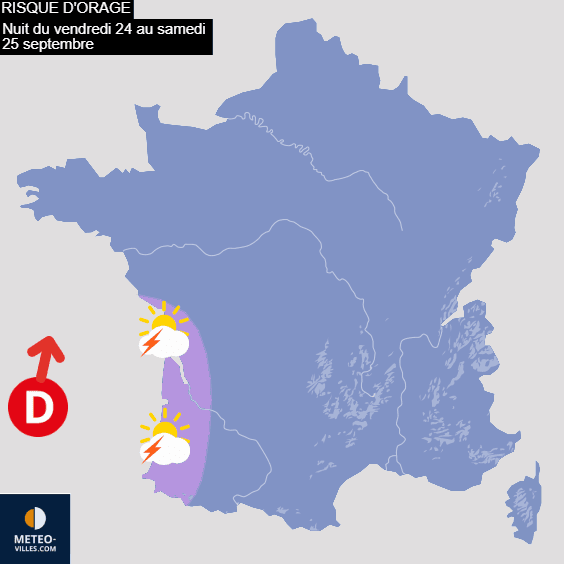 Carte du risque orageux pour la nuit du vendredi 24 au samedi 25 septembre 2021 – Météo-Villes