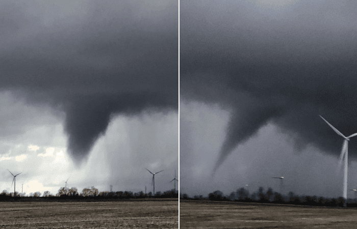 L'État de l'Illinois fut l'un des plus touchés. Sur la seule journée du mardi 3 janvier 2023, les services météo officiels ont recensé 6 reports de tornades dans ce seul État ! Le plus gros de l'activité s'est concentré à l'est de la ville de Springfield où plusieurs chasseurs de tornade sont parvenus à intercepter les phénomènes tourbillonnaires. Les images ci-dessous ont été prises à proximité de la petite commune de Maroa.