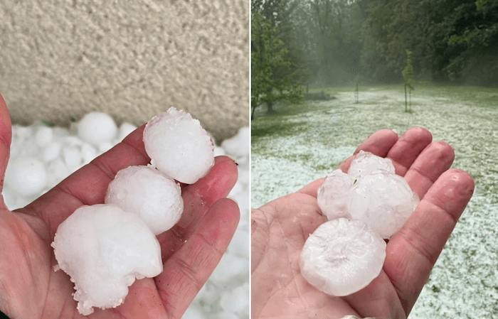 Dans certaines localités, les grêlons ont atteint 4 à 6 centimètres de diamètre au passage de ces orages supercellulaires. Ces grosses grêles ont blanchi les paysages et surtout engendré de nombreux dégâts. De nombreux producteurs ont perdu une grande partie de leurs récoltes, des toitures ont été endommagées et des pare-brises ont été pulvérisés par les grêlons !