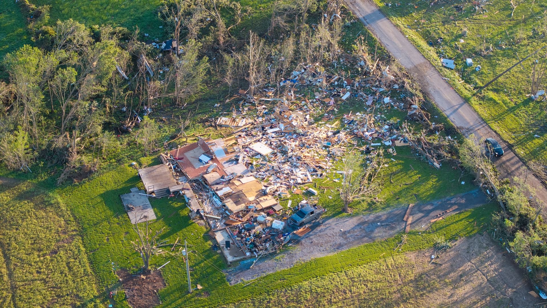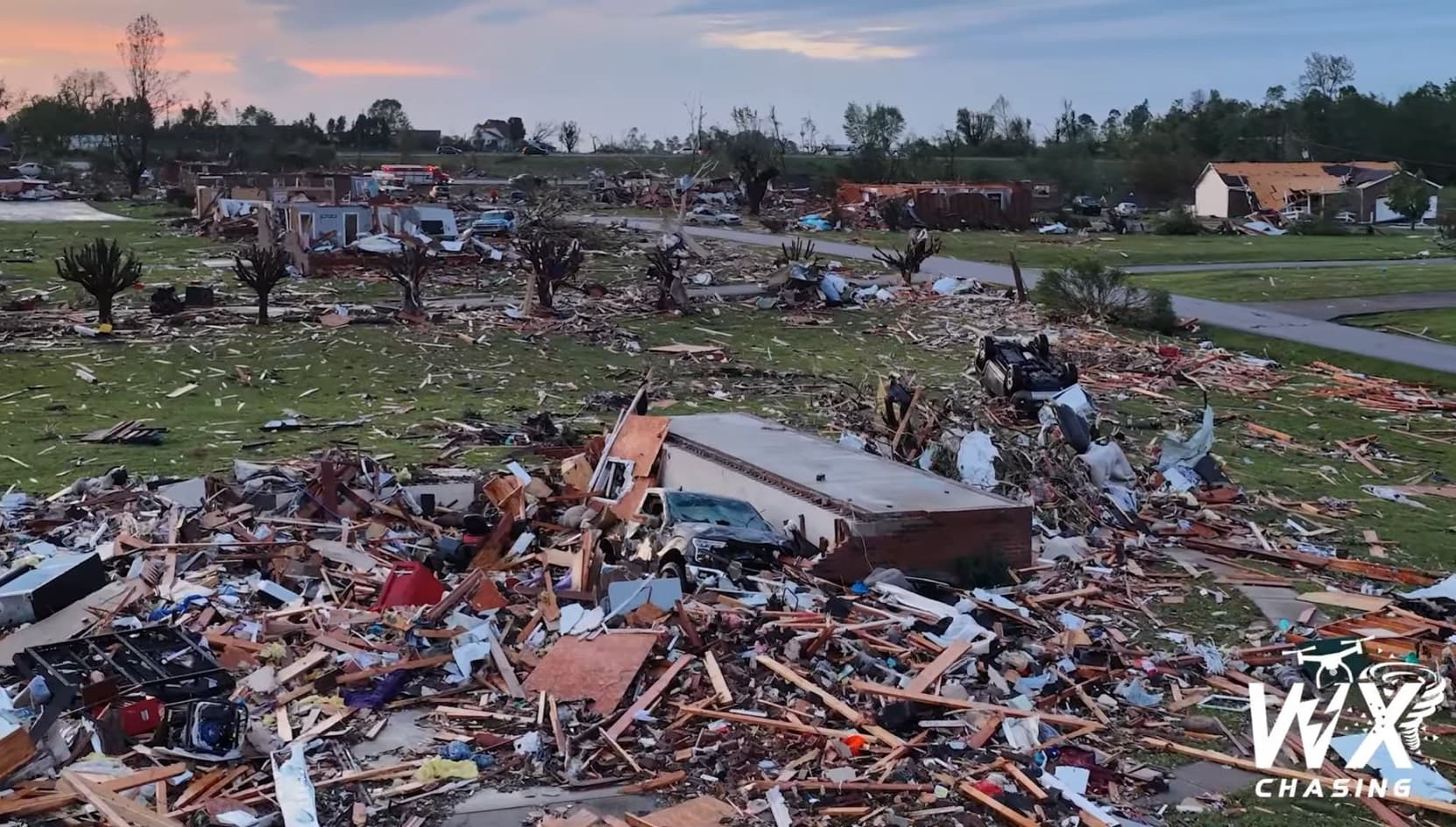 Habitations rasées suite au passage de la tornade à London dans le Kentucky dans la nuit du 16 au 17 mai 2025 – Photo : WX Chasing