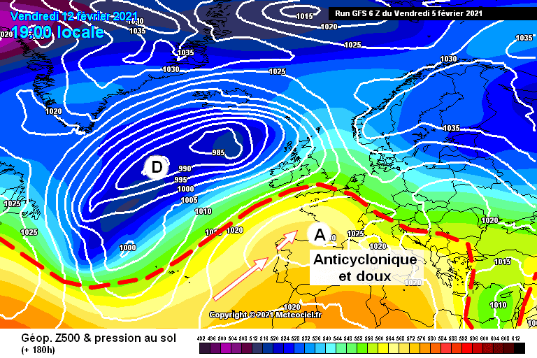 Schéma de la situation sur l’Ouest de l’Europe pour la fin de semaine du 08 au 14 février – Modèle GFS via meteociel.fr