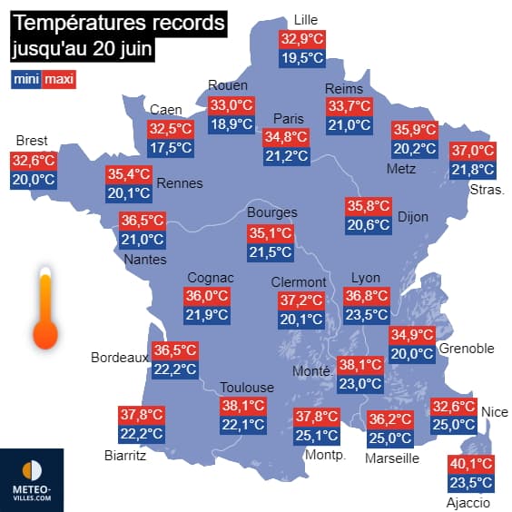 Températures records minimales & maximales jusqu'en date du 20 juin - Météo Villes