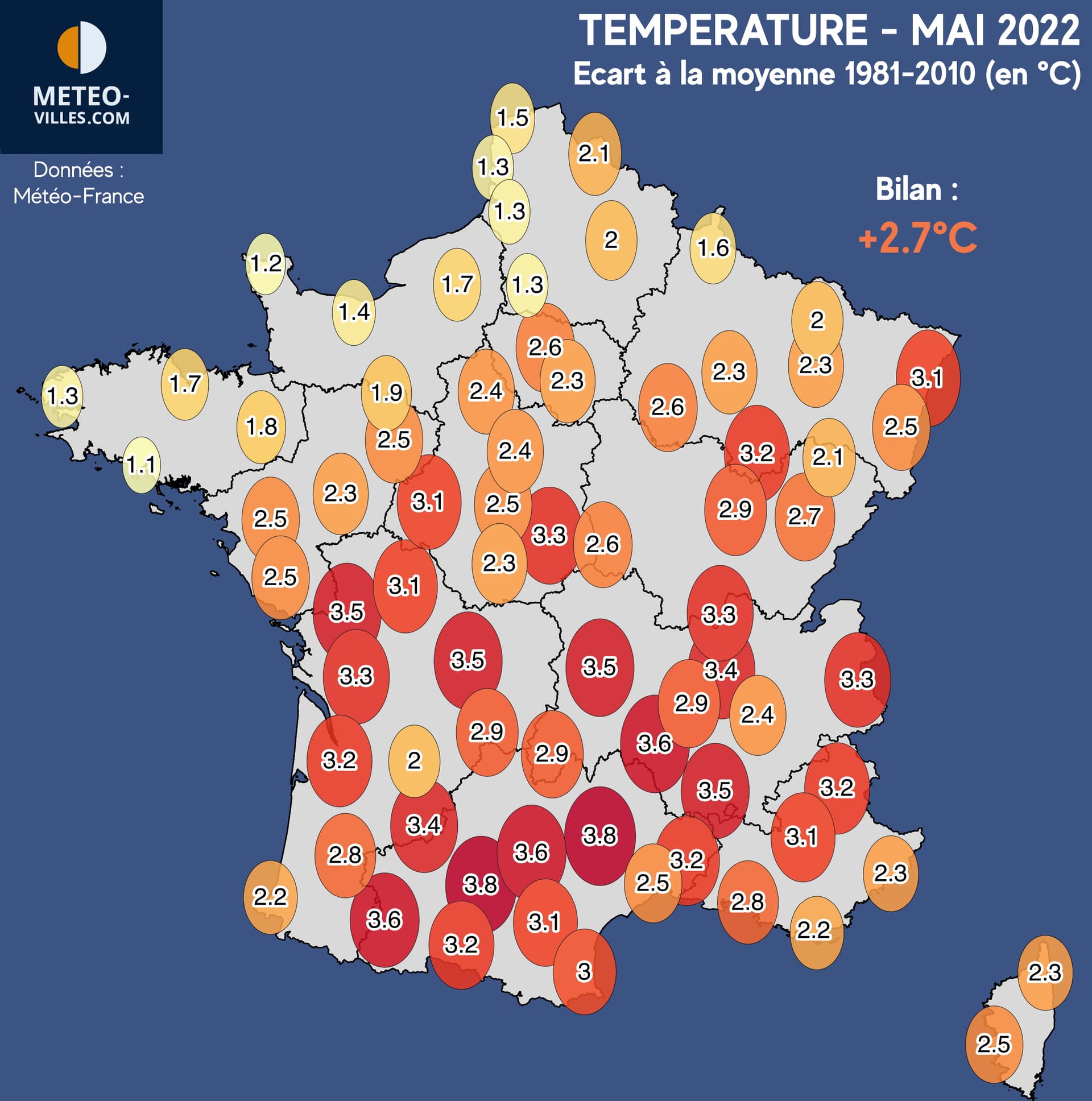 Anomalie thermique à la normale au cours du mois de mai 2022 - Météo Villes