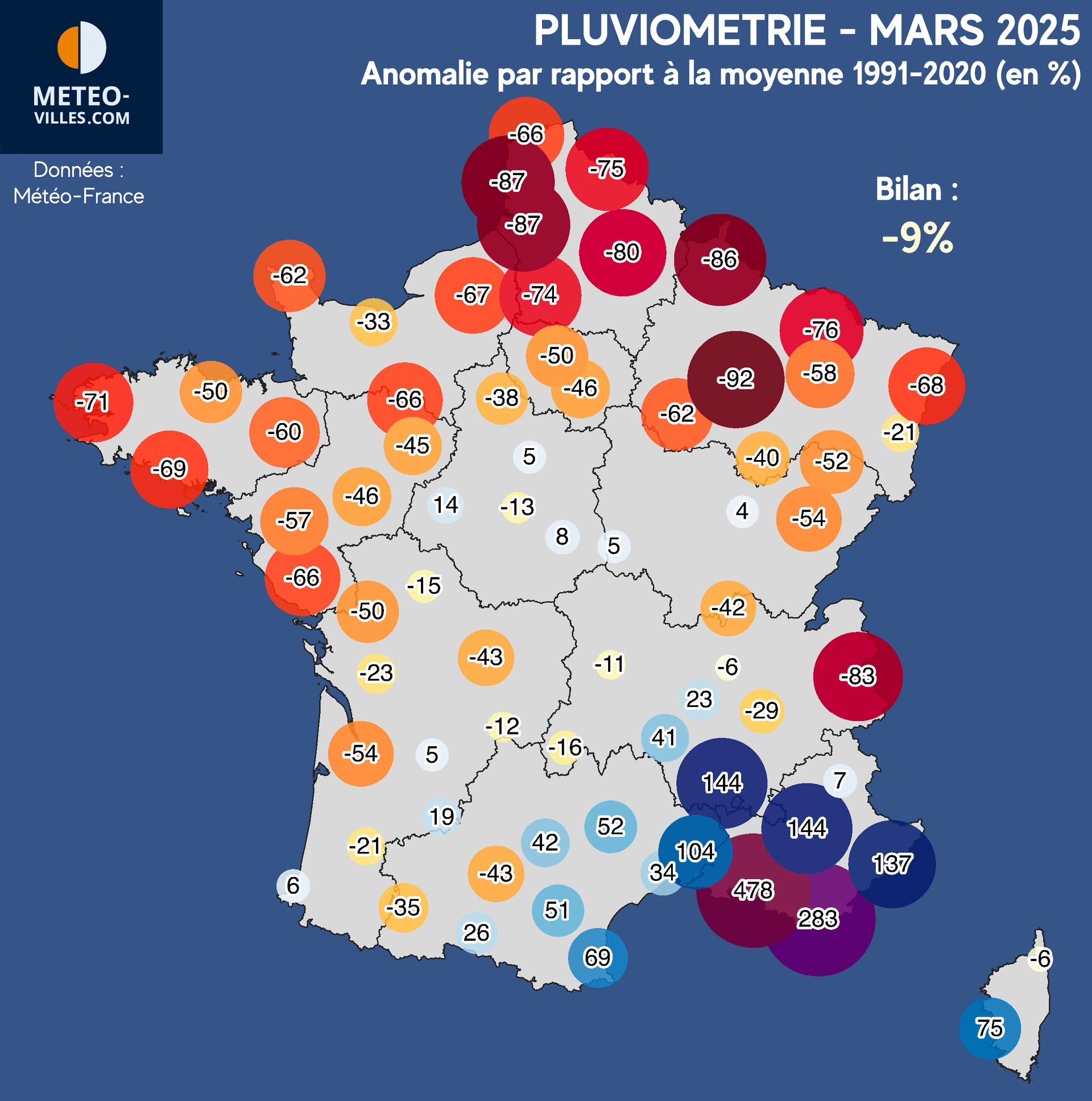 Anomalie pluviométrique au mois de mars 2025 - Météo Villes