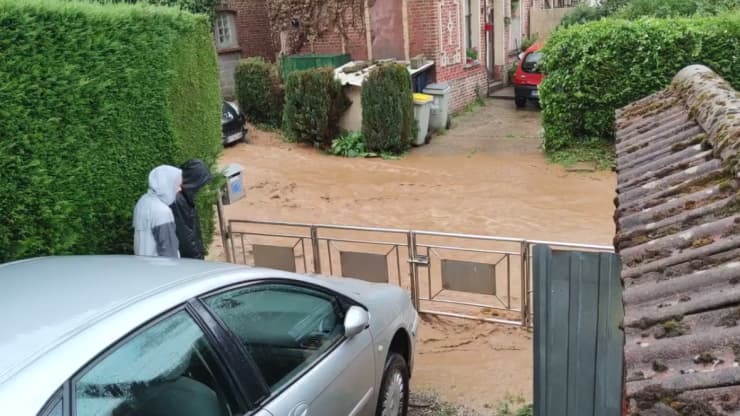 Dans certaines communes, les rues se sont transformées en torrents de boue pendant quelques minutes. Sur la photo ci-dessus, une rue de Beuzevillette en Seine-Maritime, l'un des secteurs les plus arrosés ce 2 juin 2021. Non loin de là, la station météo de Saint-Romain-de-Colbosc (76) a enregistré près de 85 mm ! En réalité, deux salves orageuses sont passées. Une avant 16h donnant plus de 22 mm et une seconde après 18h donnant plus de 62 mm !