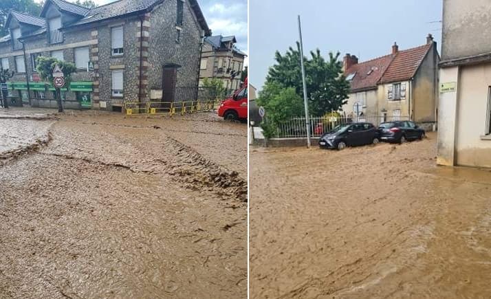 Coulées de boue dans les rues de Longperrier en Seine-et-Marne le mercredi 2 juin 2021 - via Nationale 2 Infos