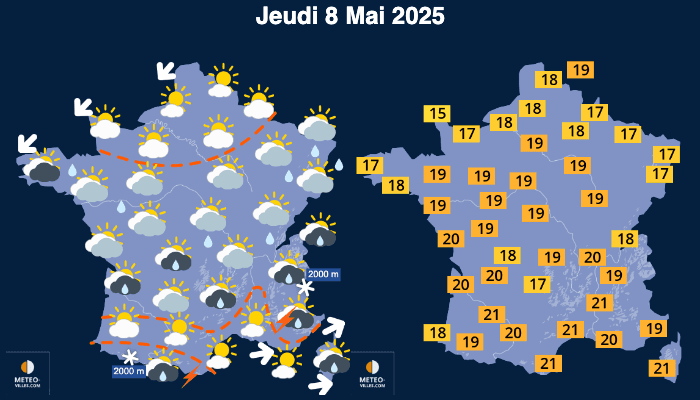 Si le Pont du 1er mai a été placé sous le signe de la chaleur, puis des orages, celui du 8 mai sera moins chaud et assez différent d'une région à l'autre.