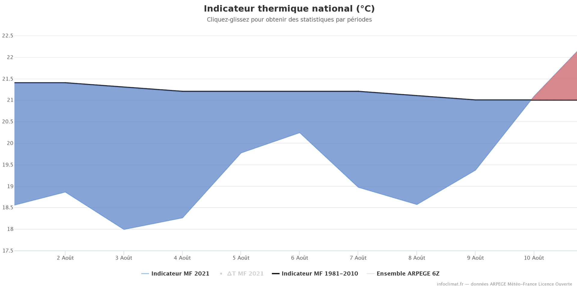 Indicateur thermique national du 1er au 12 août 2021 en France – Infoclimat