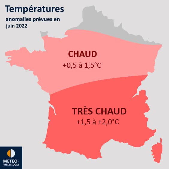 Projection de l'anomalie thermique en juin 2022 - Météo Villes