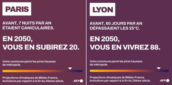 Évolution des températures à Paris et Lyon d'ici 2050 - infographies AFP