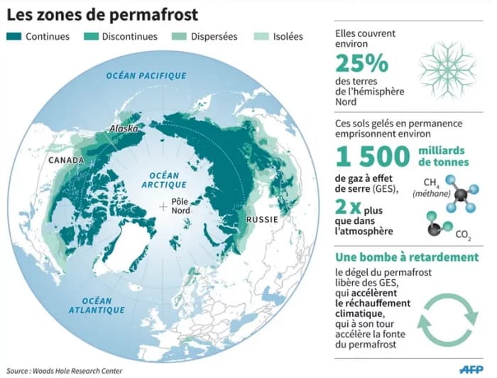 Zones de permafrost dans l'hémisphère nord - infographie AFP