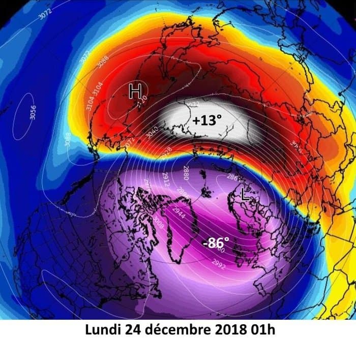 Exemple de réchauffement stratosphérique soudain au mois de décembre 2018 sur l’hémisphère Nord – Via meteobelgium.be