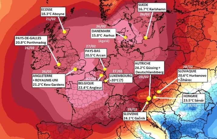 Douceur exceptionnelle sur l’Europe pour la deuxième quinzaine de février 2019 – Via Météo-Villes