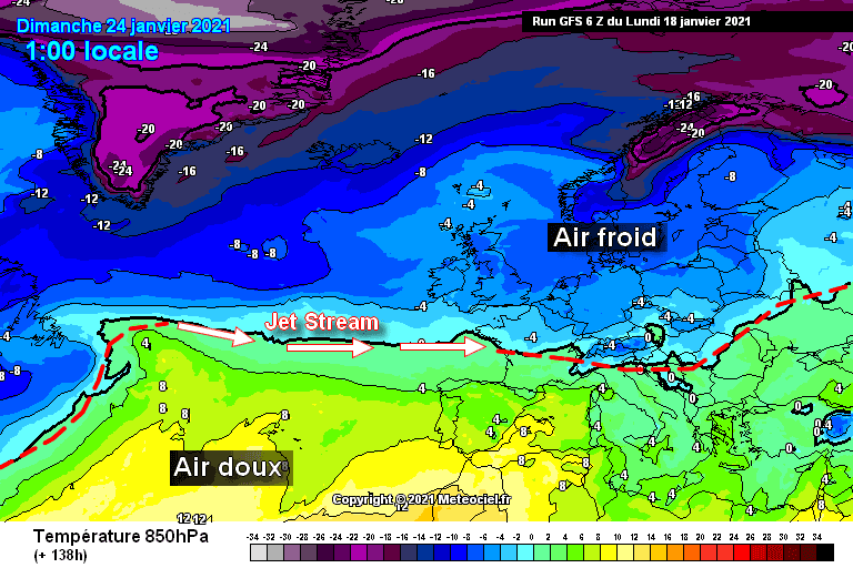 Ce type de situation n’est pas favorable à une vague de froid étendue sur le pays, plutôt à une succession de dépressions parfois accompagnées de coups de vent ou tempête car propulsées par le courant jet. C’est donc plutôt le risque de coup de vent et de fortes précipitations durables qu’il faudra surveiller sur la France d’ici la fin du mois de janvier.