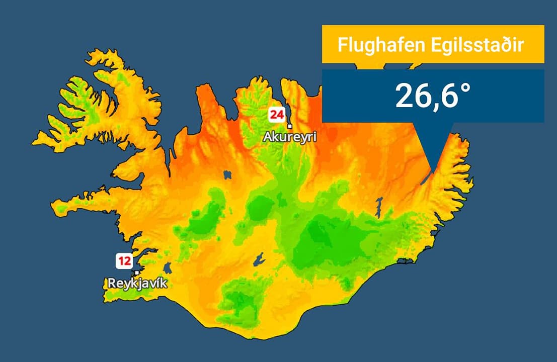 Température record de 26,6°C dans l'est de l'Islande le 15 mai 2025 - wetteronline