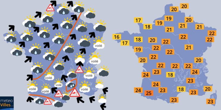 Temps et températures maximales prévus ce mercredi 21 octobre 2020 - Météo Villes