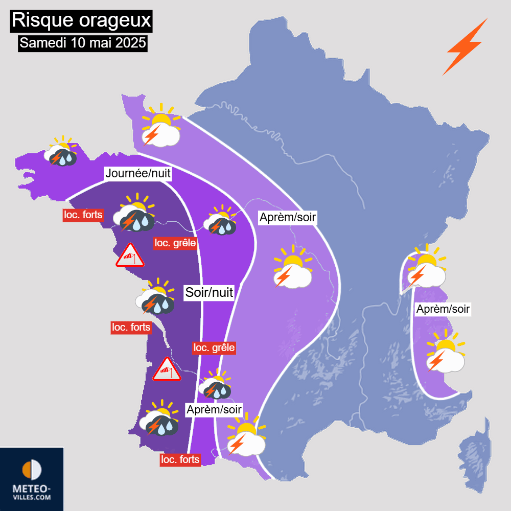 Carte du risque orageux sur la France pour la journée du 10 mai 2025 – Météo-Villes