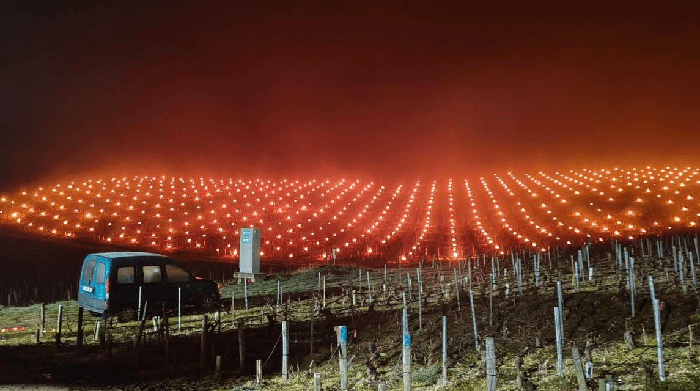 Bougies anti-gel dans les vignes de Chablis dans l'Yonne le dimanche 15 mars 2026 - Météo89