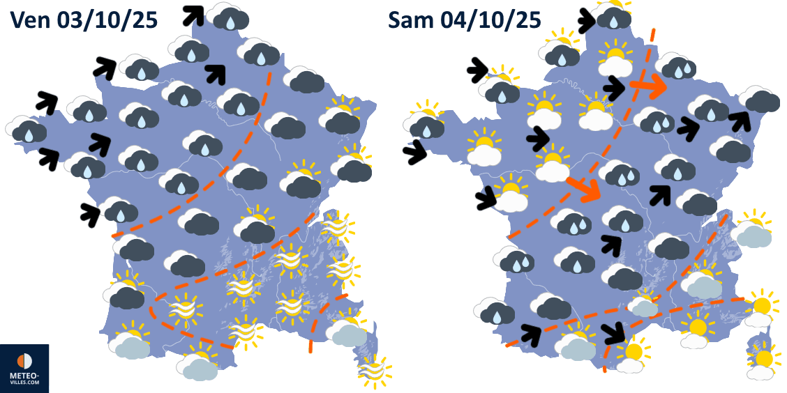 Prévisions météo en France les vendredi 3 et samedi 4 octobre 2025 - Météo Villes