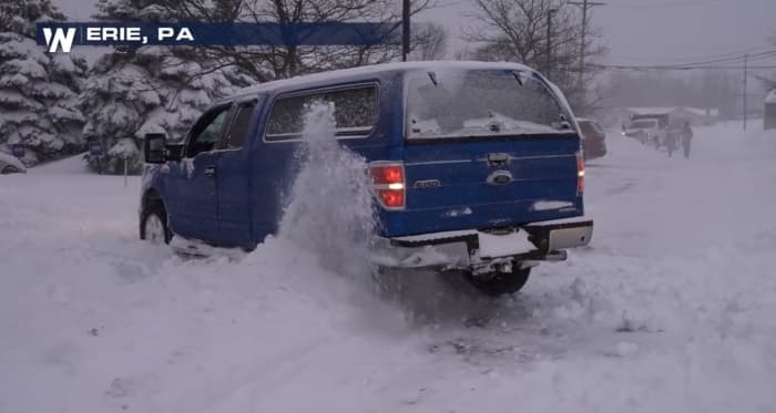 Véhicule coincé par la tempête de neige à Erie (Pennsylvanie) ce lundi 17 janvier 2022 - via WeatherNation