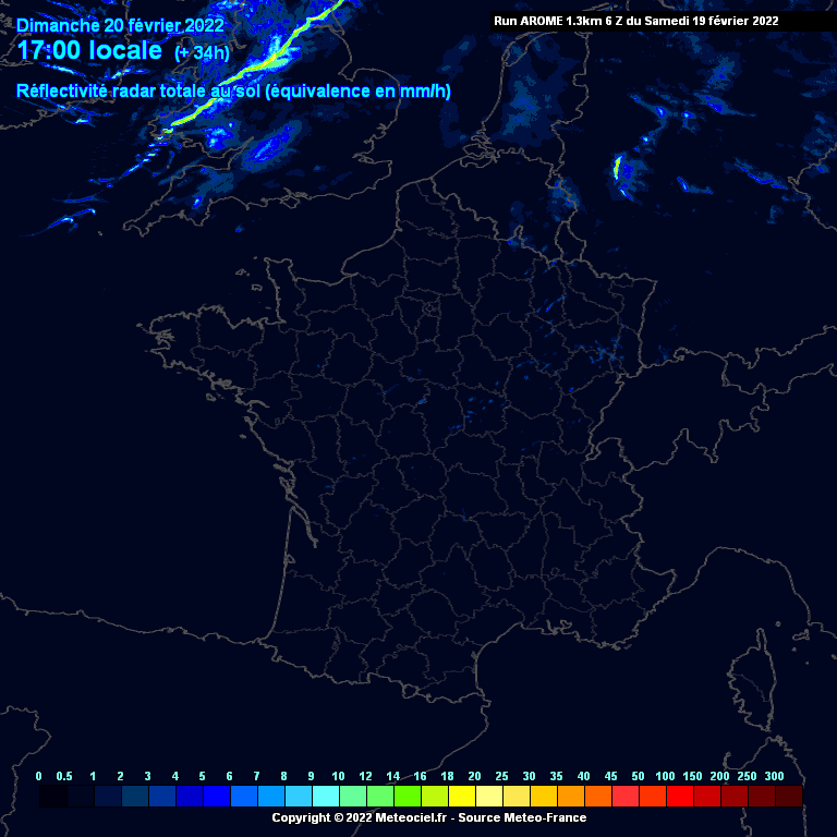 Animation des précipitations et du front froid - soirée et nuit du 20 au 21 février 2022 - Modèle Arome via Meteociel