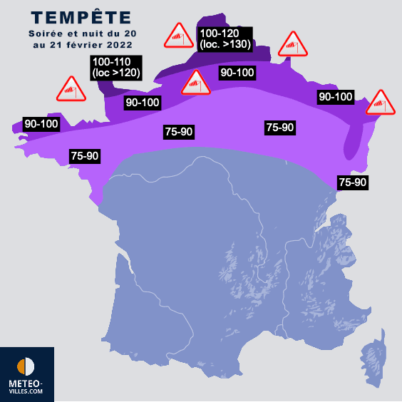 Rafales de vent prévues en soirée et nuit du 20 au 21 février 2022 - Météo-Villes