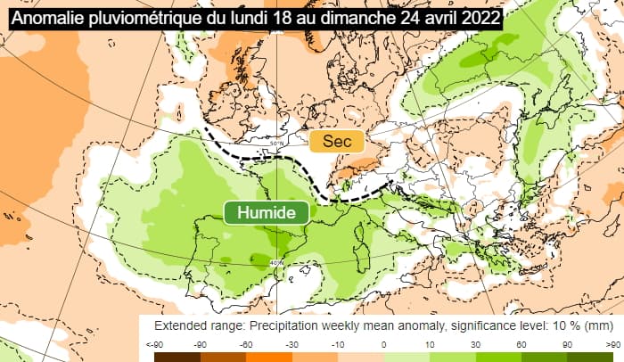 Concrètement, la journée la plus agitée sera celle du samedi 23 avril 2022 dans le sud-est de la France et sur le sud du Massif Central où des pluies copieuses et localement orageuses sont attendues. Les averses à caractère orageux pourront aussi concerner le restant des secteurs situés au sud de la Loire et seules les régions les plus au nord échapperont au risque de pluie. Pour le dimanche 24 avril, les nuages resteront nombreux et encore accompagnés de fréquentes averses, n'épargnant que les régions s'étendant du nord de la Bretagne à la Belgique.