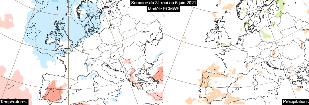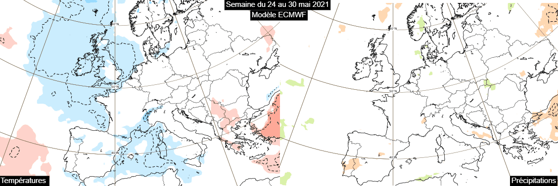Anomales de températures et de précipitations durant la semaine du 24 au 30 mai 2021 – Modèle ECMWF