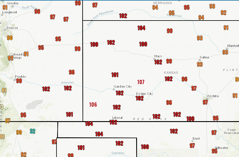 Températures maximales relevées le 11 septembre sur les grandes plaines américaines (en °F) – Via Extreme Temperatures Around The World