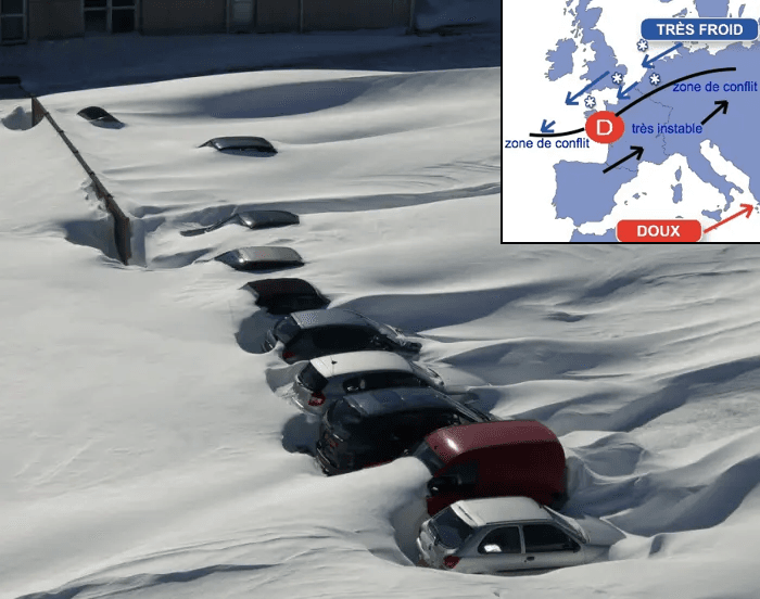 Des tempêtes de neige de la dimension de celle qui vient de toucher le nord-est des USA ne sont pas véritablement possibles en France et ce pour des raisons géographiques. En effet, lorsque l'air polaire descend sur le nord-est des États-Unis, il atteint l'océan Atlantique sans avoir rencontré de mer. Ainsi, il est encore particulièrement froid. Cet air glacial crée un gros contraste thermique avec les eaux douces de l'Atlantique, ce qui peut générer une cyclogenèse explosive au dessus de l'océan avec des dépressions se creusant très rapidement et générant des tempêtes de neige de forte intensité sur la côte est américaine, comme ce fut le cas ce lundi 23 février 2026.