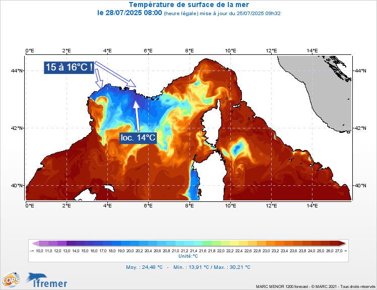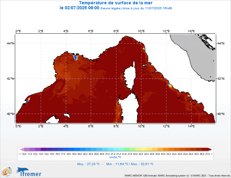 Températures de la mer Méditerranée ce 28 juillet 2025 – IFREMER
