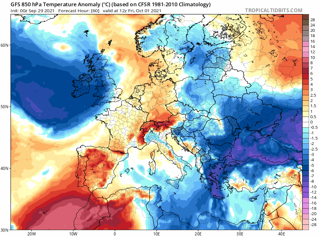 Anomalies de la masse d'air du vendredi 1er au lundi 4 octobre 2021 - via tropicaltidbits.com