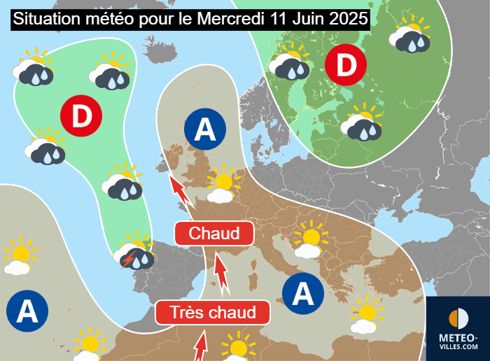 Situation météo en Europe pour le mercredi 11 juin 2025 - Météo Villes
