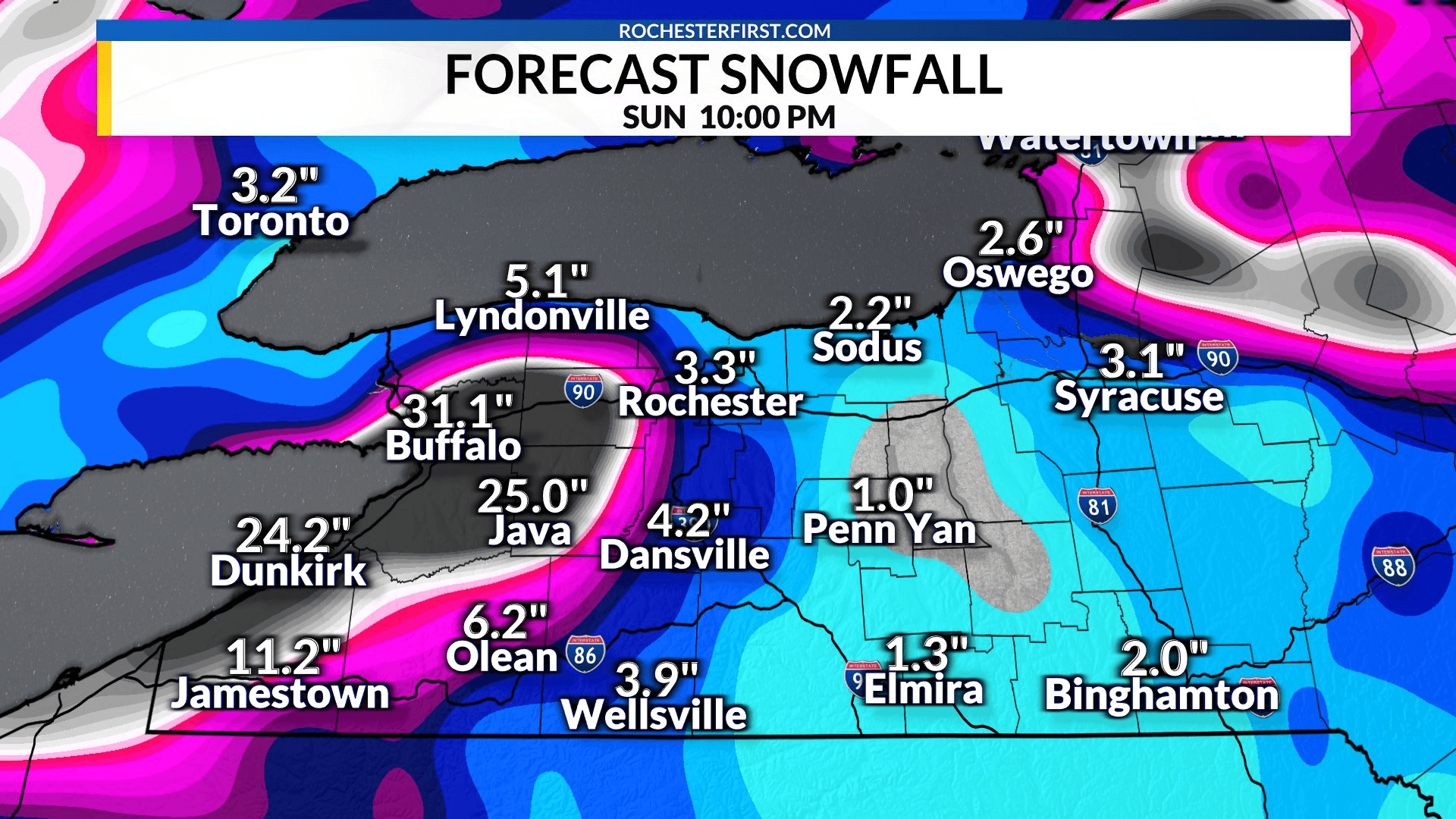 Prévision des cumuls de neige près des lacs Erie & Ontario d'ici le 20 novembre 2022 – via @EricSnitilWx