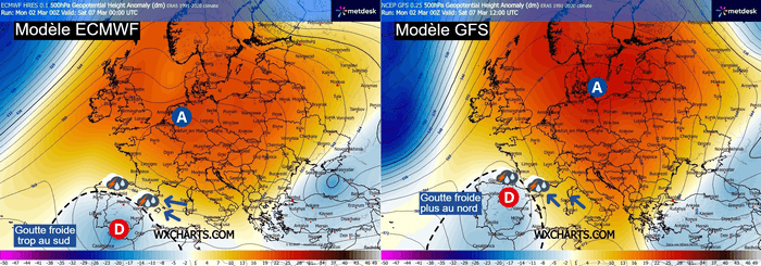 C'est pour cela que les scénarios sont encore très changeants pour le moment en fonction des modèles et des réactualisations, car le placement de la goutte froide n'est pas encore bien cerné, ce qui est normal à une telle échéance.