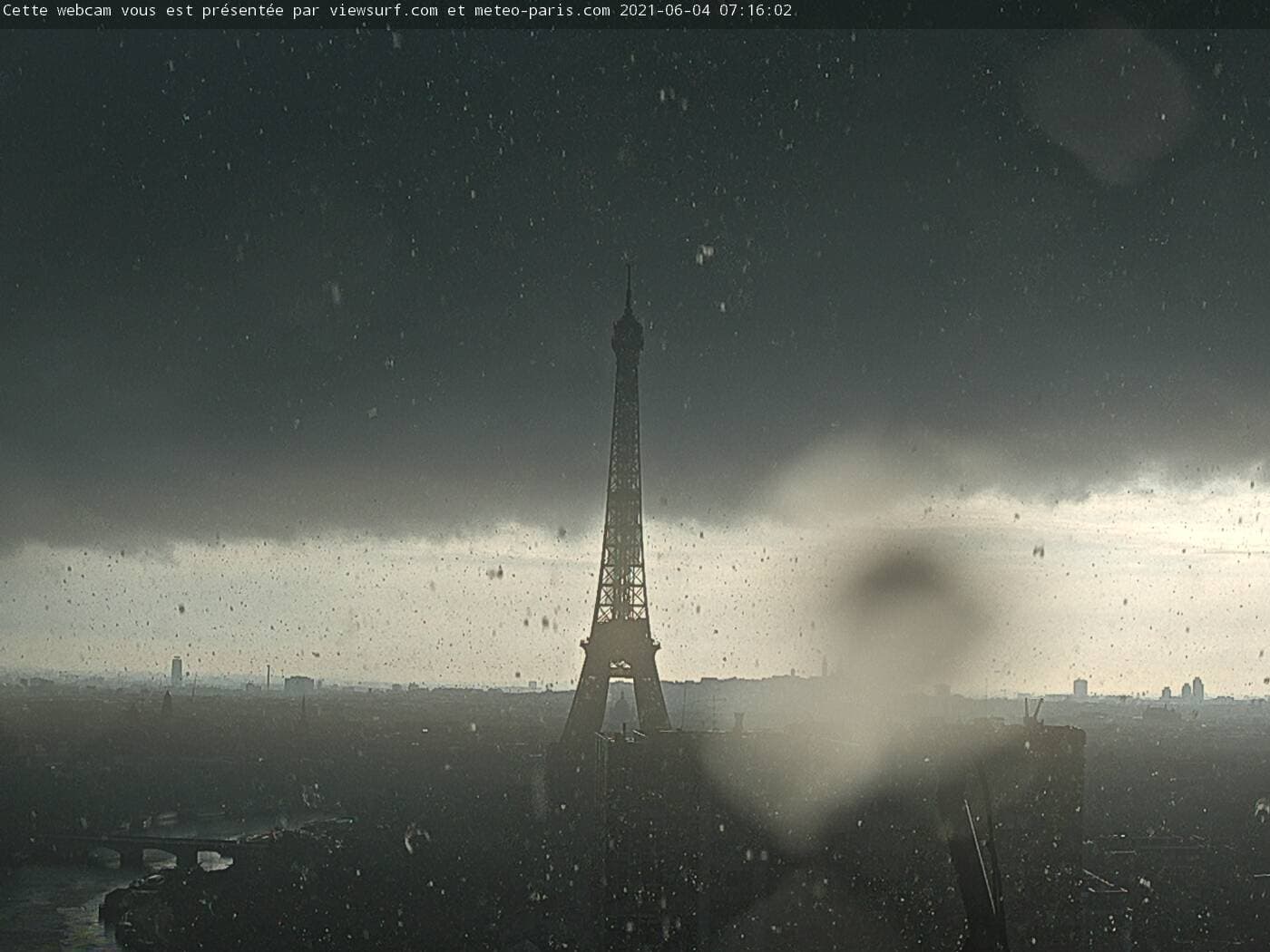 Arrivée de l’orage sur Paris, vu depuis la webcam de Beaugrenelle, orientée vers la Tour Eiffel – Météo-Paris