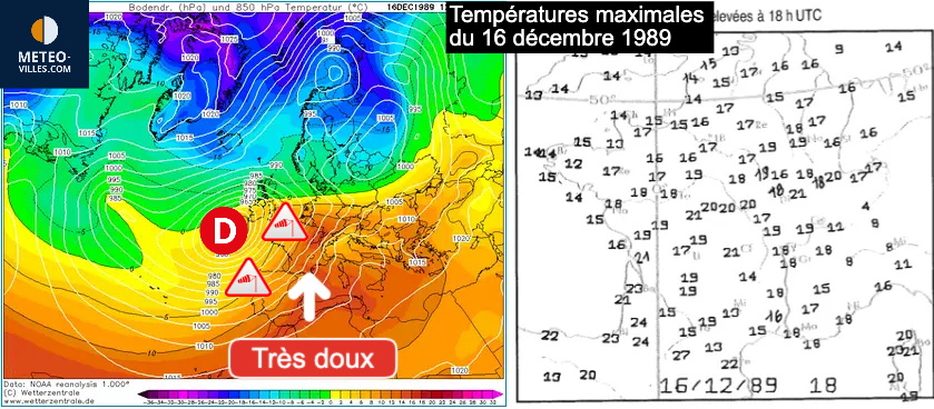 Tempête et douceur exceptionnelle du 16 décembre 1989 - analyse météo