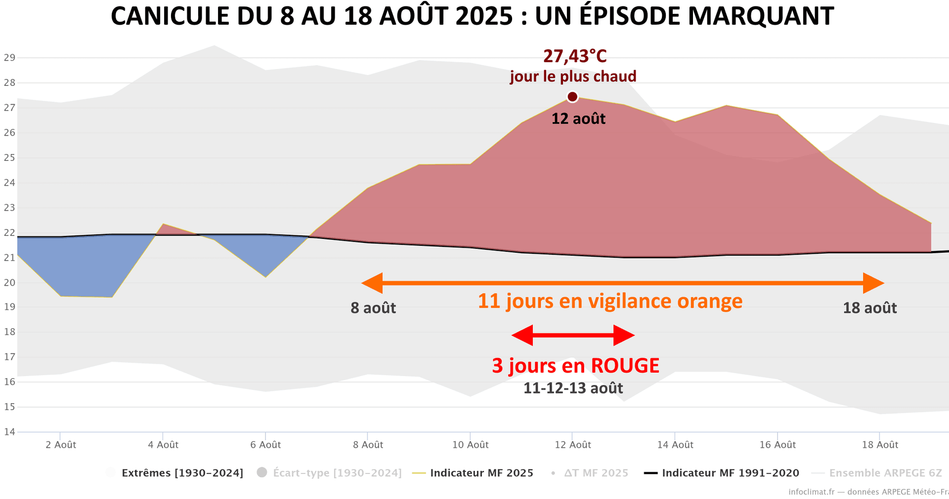 Indicateur thermique national du 1er au 19 août 2025 - infoclimat.fr